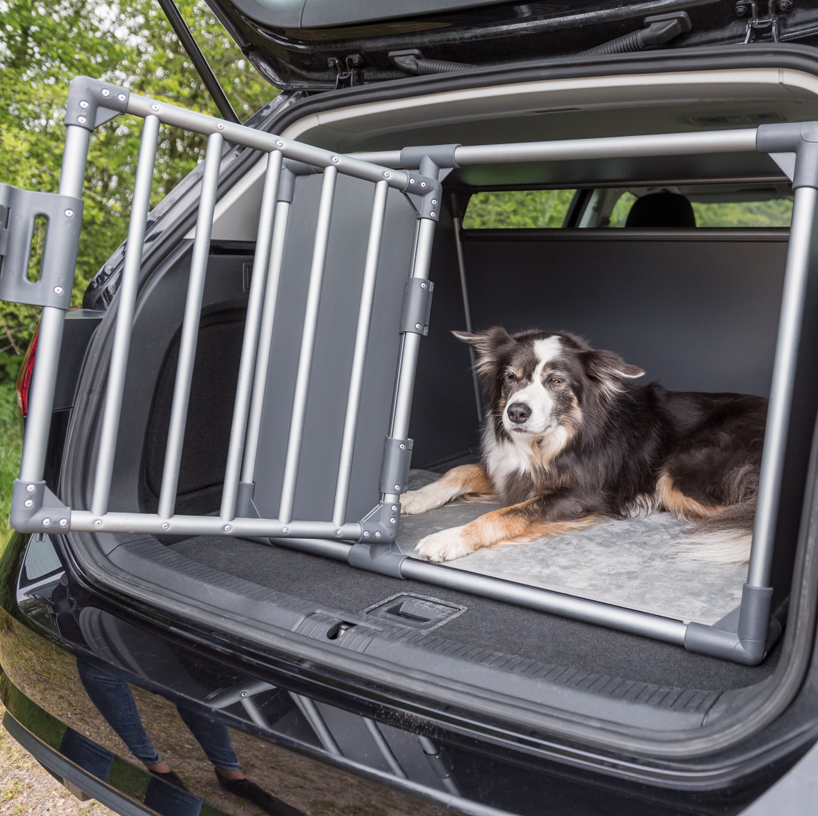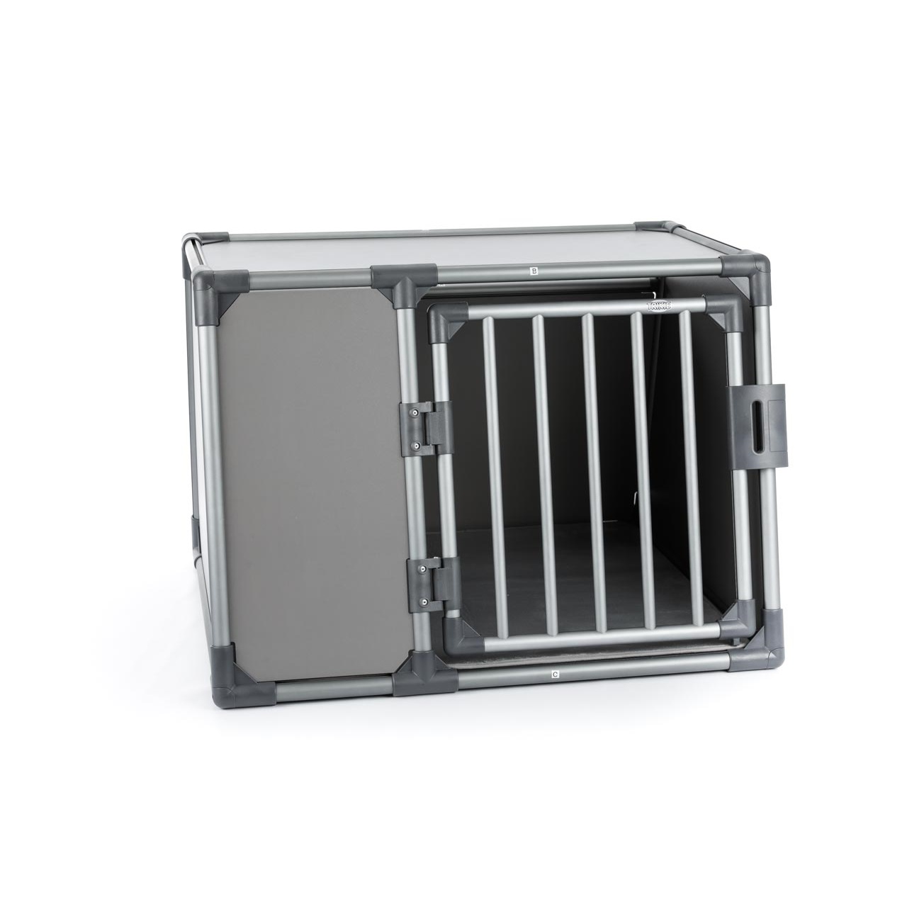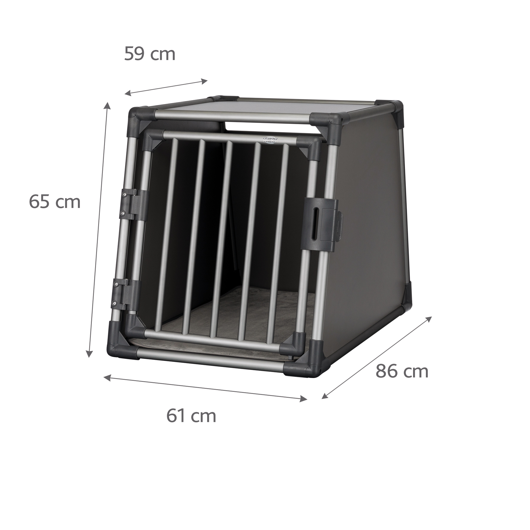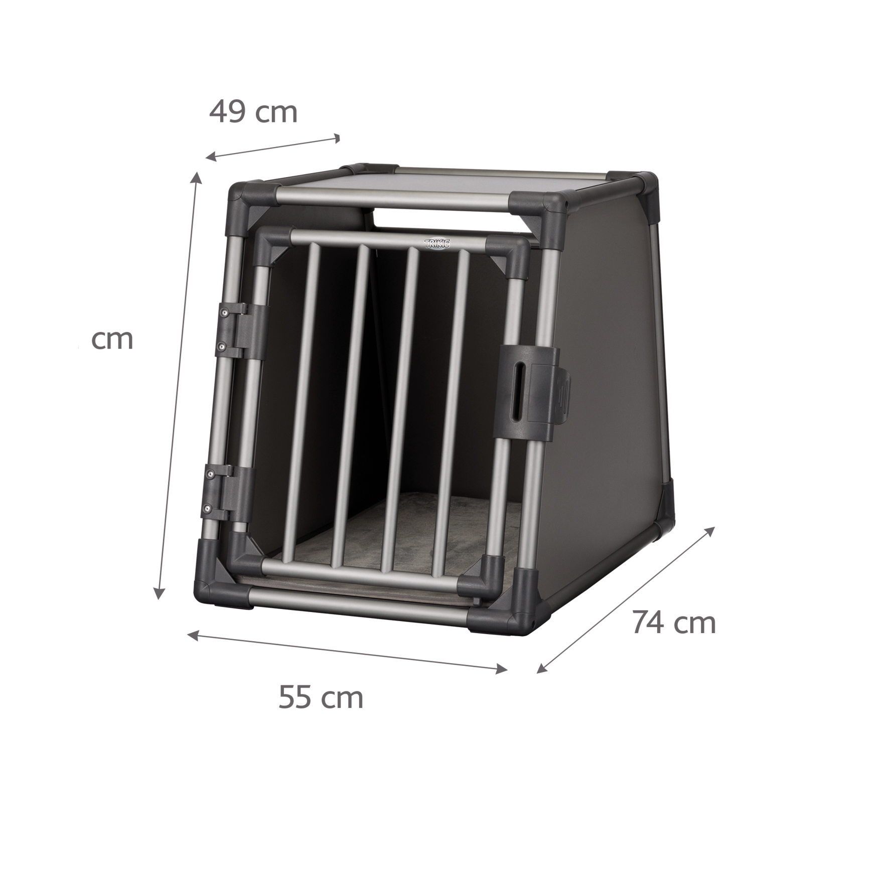 Takket være den skrånende utformingen av forsiden og baksiden, kan du plassere det i bagasjerommet eller på baksetet og feste det med borrelåsstroppene, på bunnen og transportere dyret på en av de sikrest mulig måtene. De høye, lukkede veggene sørger ikke bare for at bagasjerommet holdes rent, men er også perfekt for å redusere ytre stimuli eller støy. På grunn av den robuste døren med sikkerhetslås, vil kjæledyret være trygt og sikret.