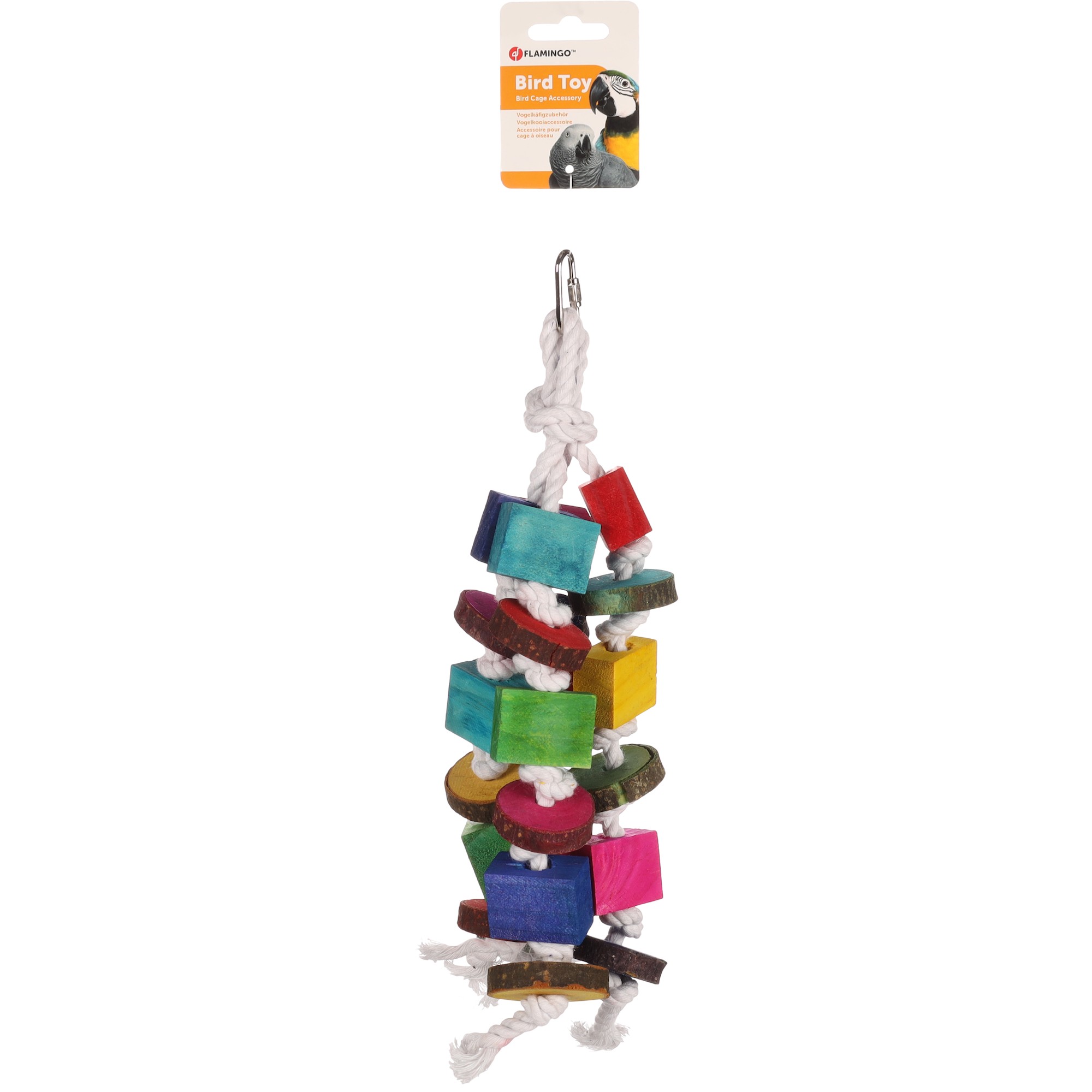 Gi din papegøye den beste underholdningen med denne fargerike fugleleken med 4 tau og treperler