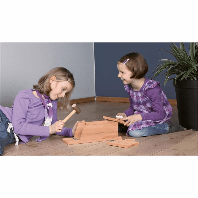 Følg instruksjonene som følger med kassen for å sette den sammen. Når fuglehuset er ferdig, kan barna male og dekorere det etter egne ønsker, noe som gjør hvert hus unikt! Plasser det på et passende sted i hagen eller balkongen, og se frem til å se småfuglene fly inn og ut.