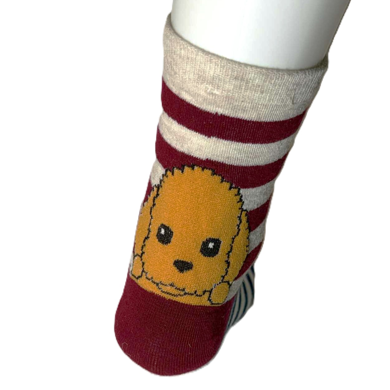 Stripet sokk med søt hund over hel