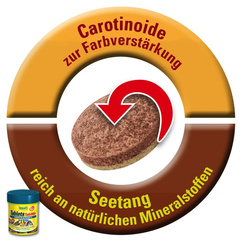 Tetra TabiMin er et balansert tablettfôr utviklet for kjøttetende bunnlevende fiskearter. Produktet passer til Corydoras pansermaller, botia, smerlinger, reker og arter i ancistrus-familien (hypancistrus, otocinclus, ancistrus). Kan brukes som hovedfôr, men bør kombineres med andre fôrtyper for et variert kosthold.