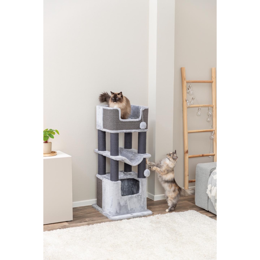 Trixie Lucano XXL kloremøbel gir store katter et robust og komfortabelt sted for kloring, lek og hvile. Med slitesterke klorestolper i jute og sisal, hyggelige soveplasser med vaskbare puter samt en stilren design i nøytrale farger, passer dette møbelet perfekt i hjemmet.